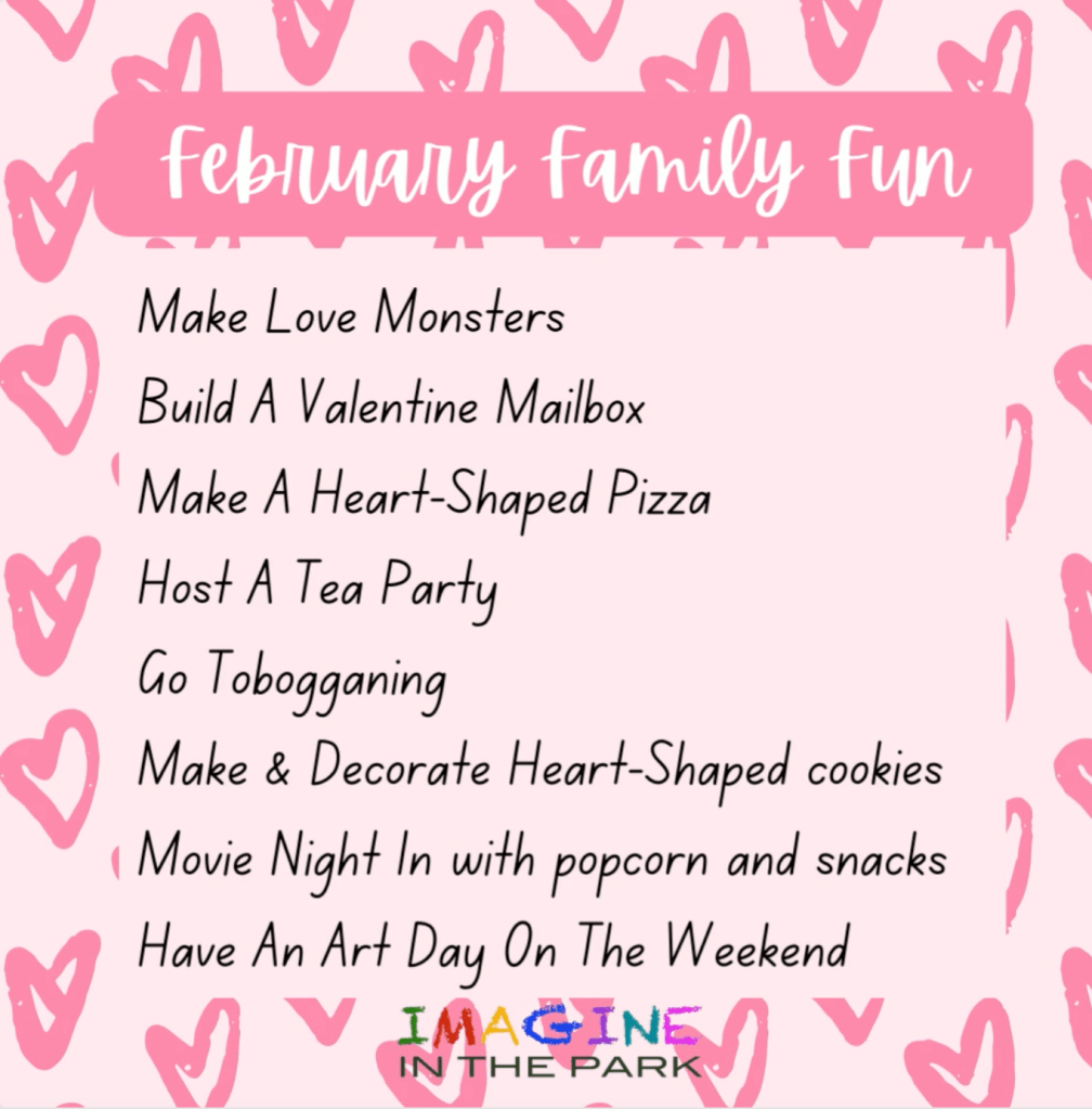 Hey friends! Each month we’ll be sharing some family fun ideas at the beginning of the month! We’re kicking it off today with some family fun ideas for February!