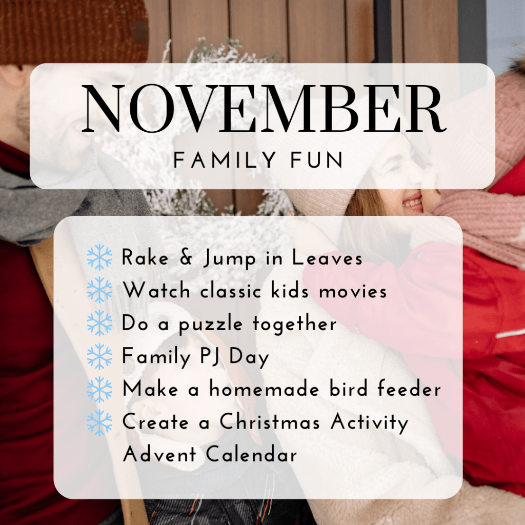 Hey friends! Each month we’ll be sharing some family fun ideas at the beginning of the month!